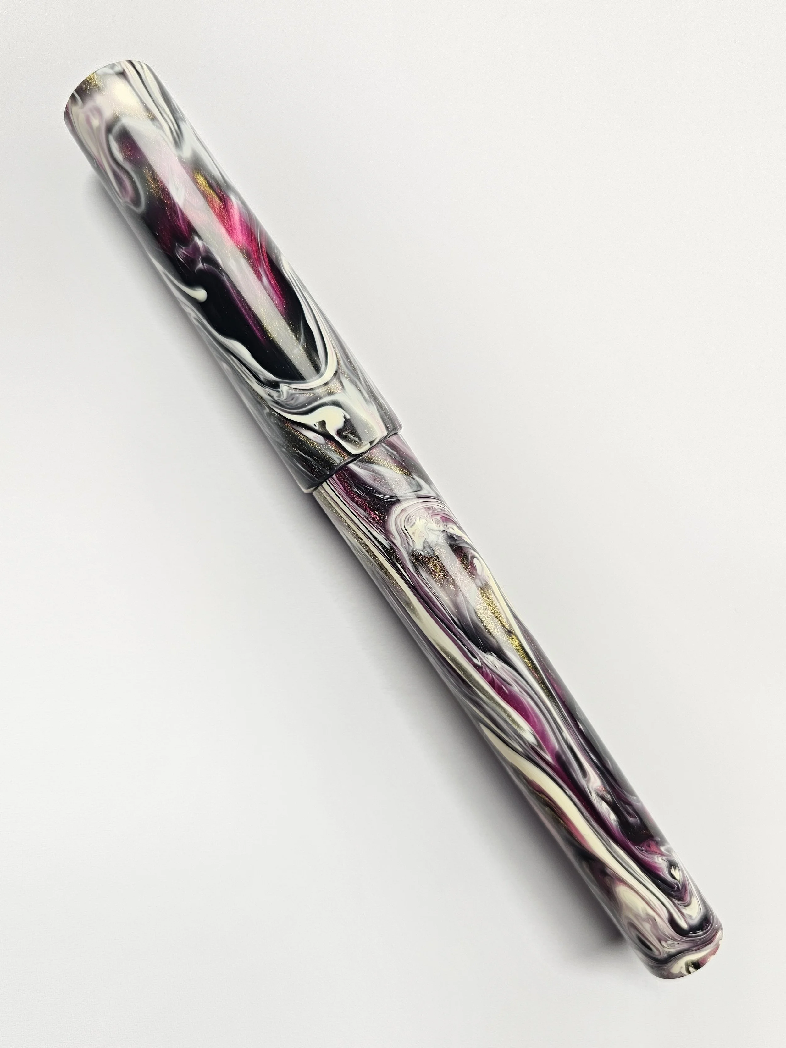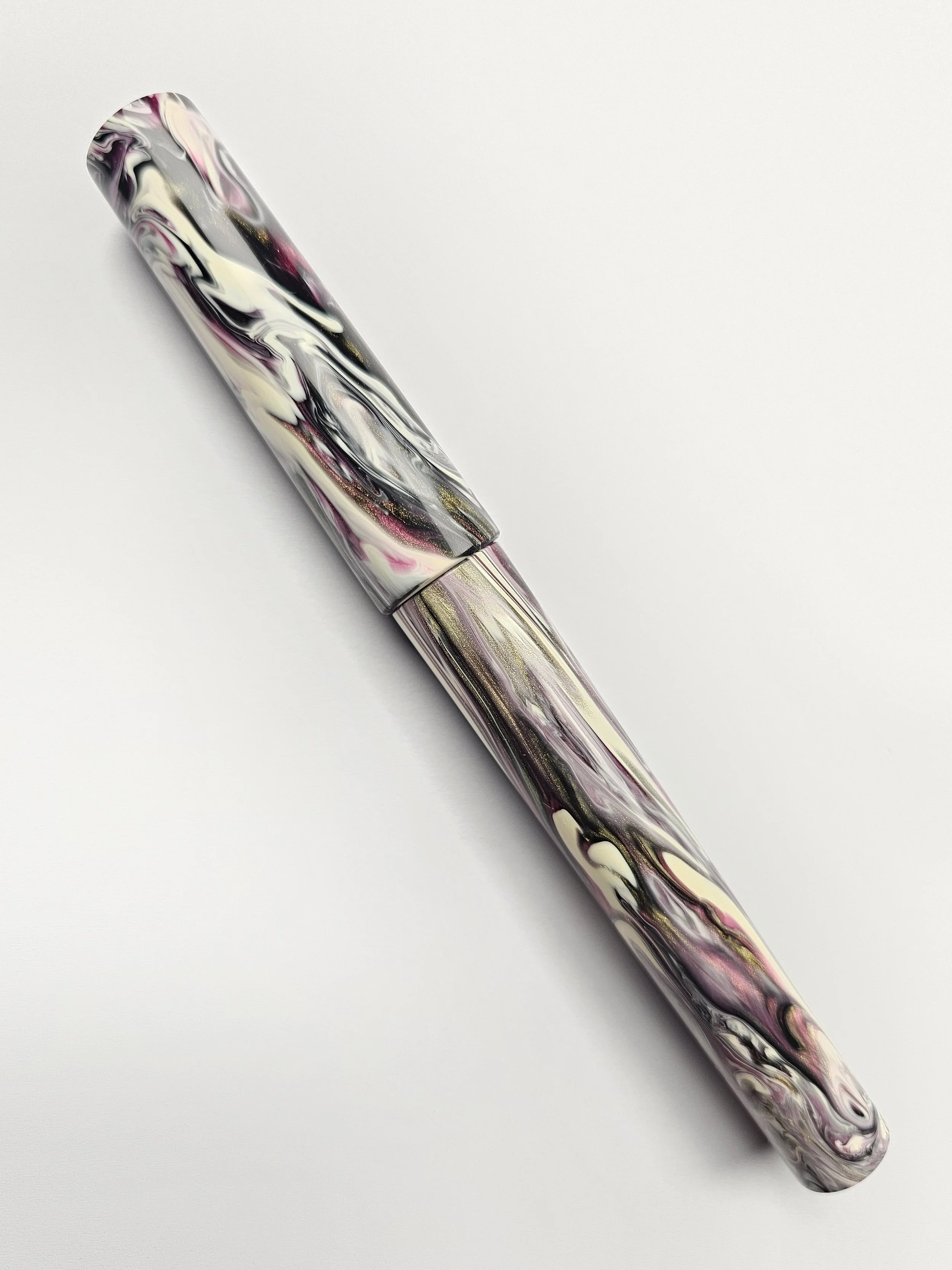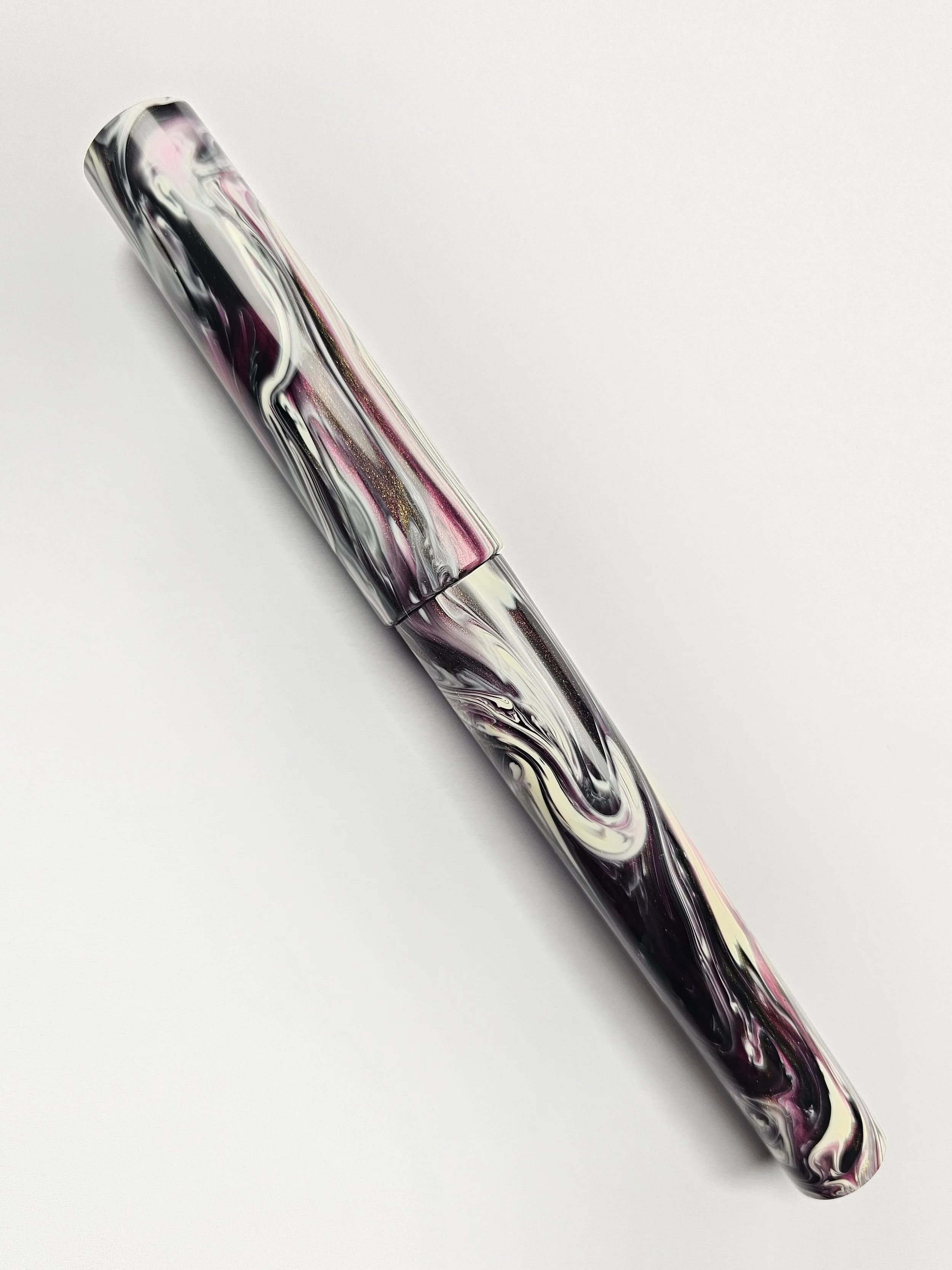 From the Koi series of blanks a purply/pink with a dark grey and golds swirled with a Creamy White.