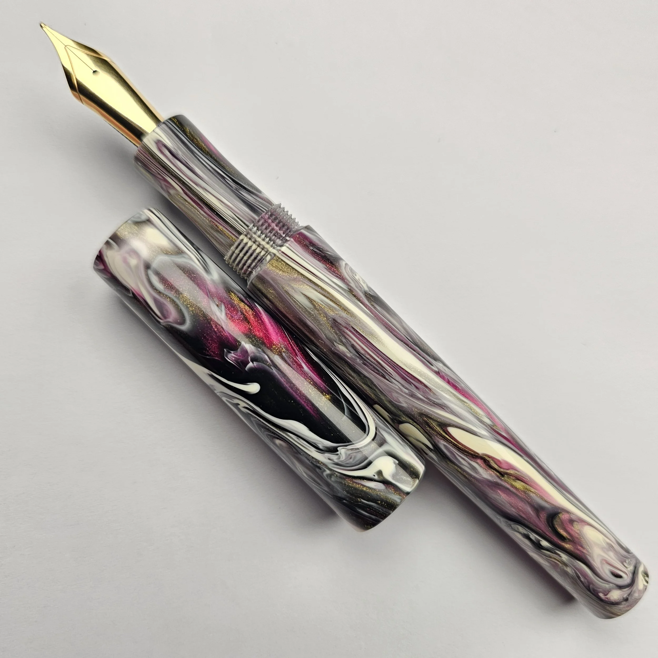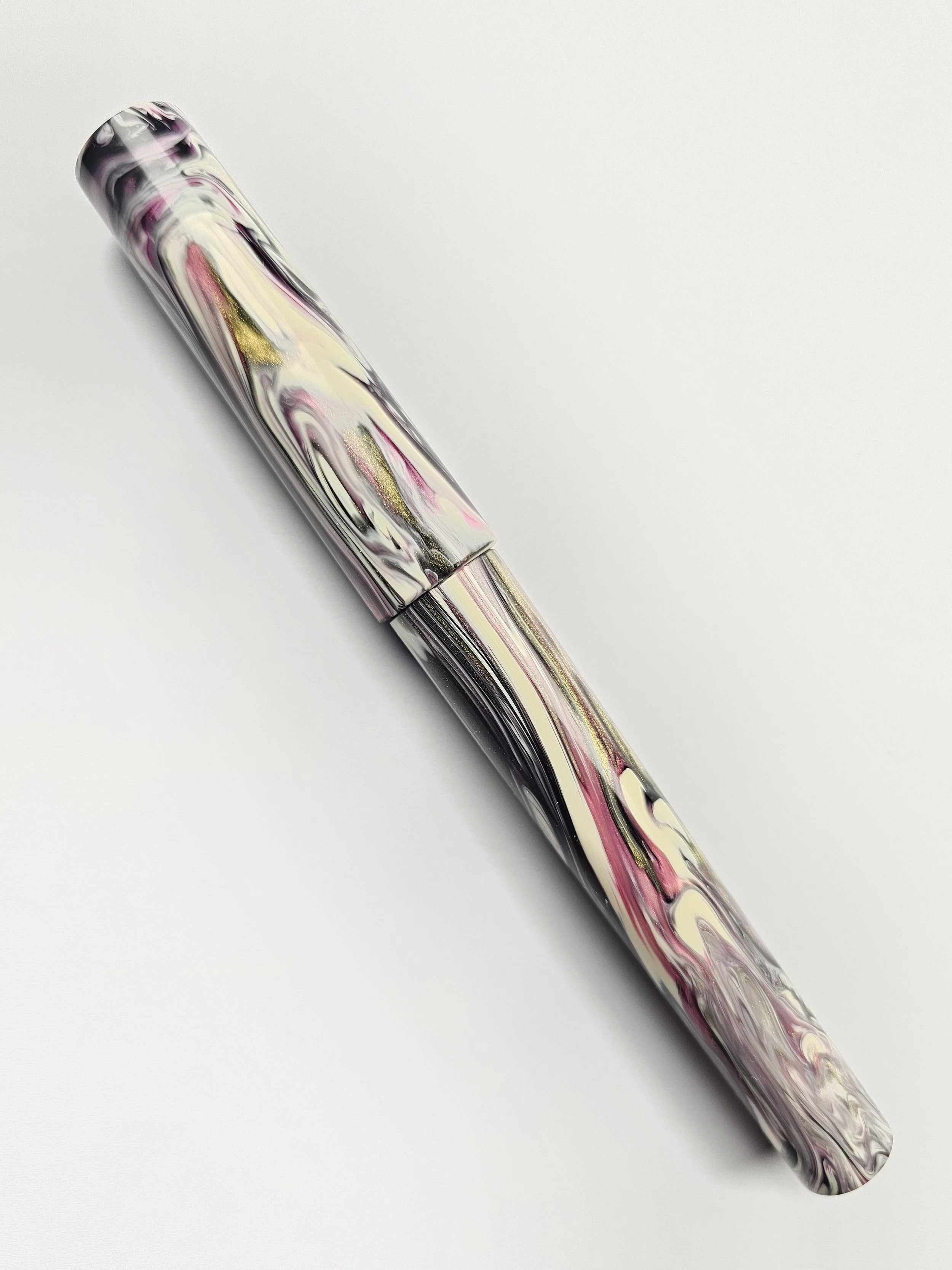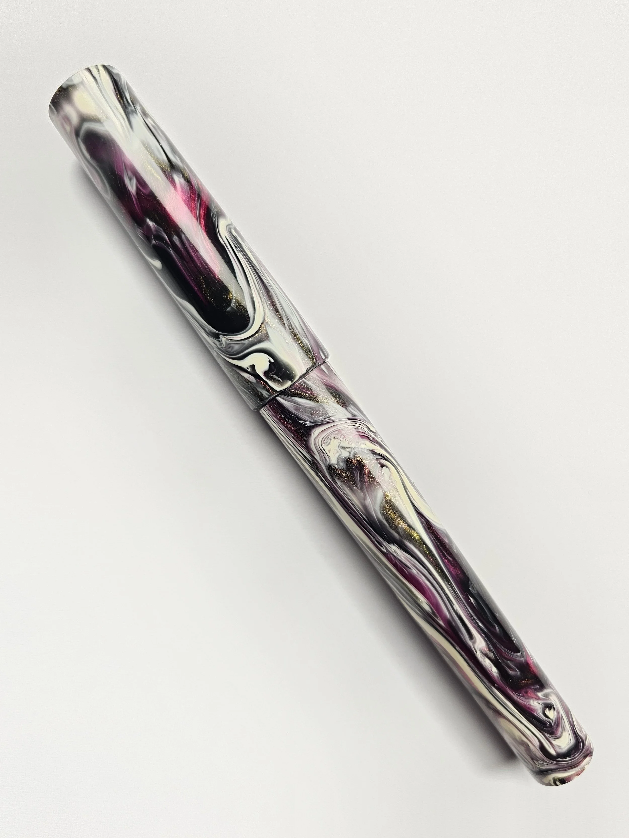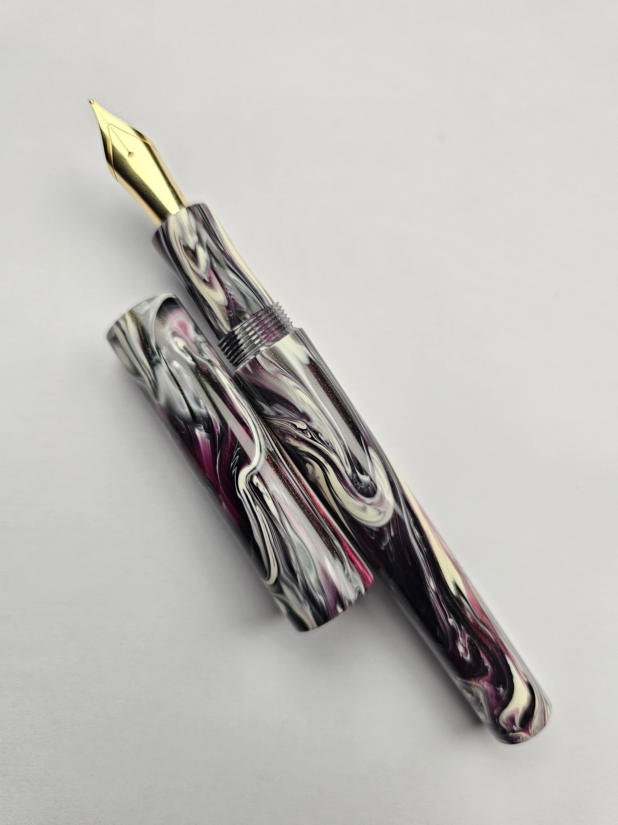 From the Koi series of blanks a purply/pink with a dark grey and golds swirled with a Creamy White.