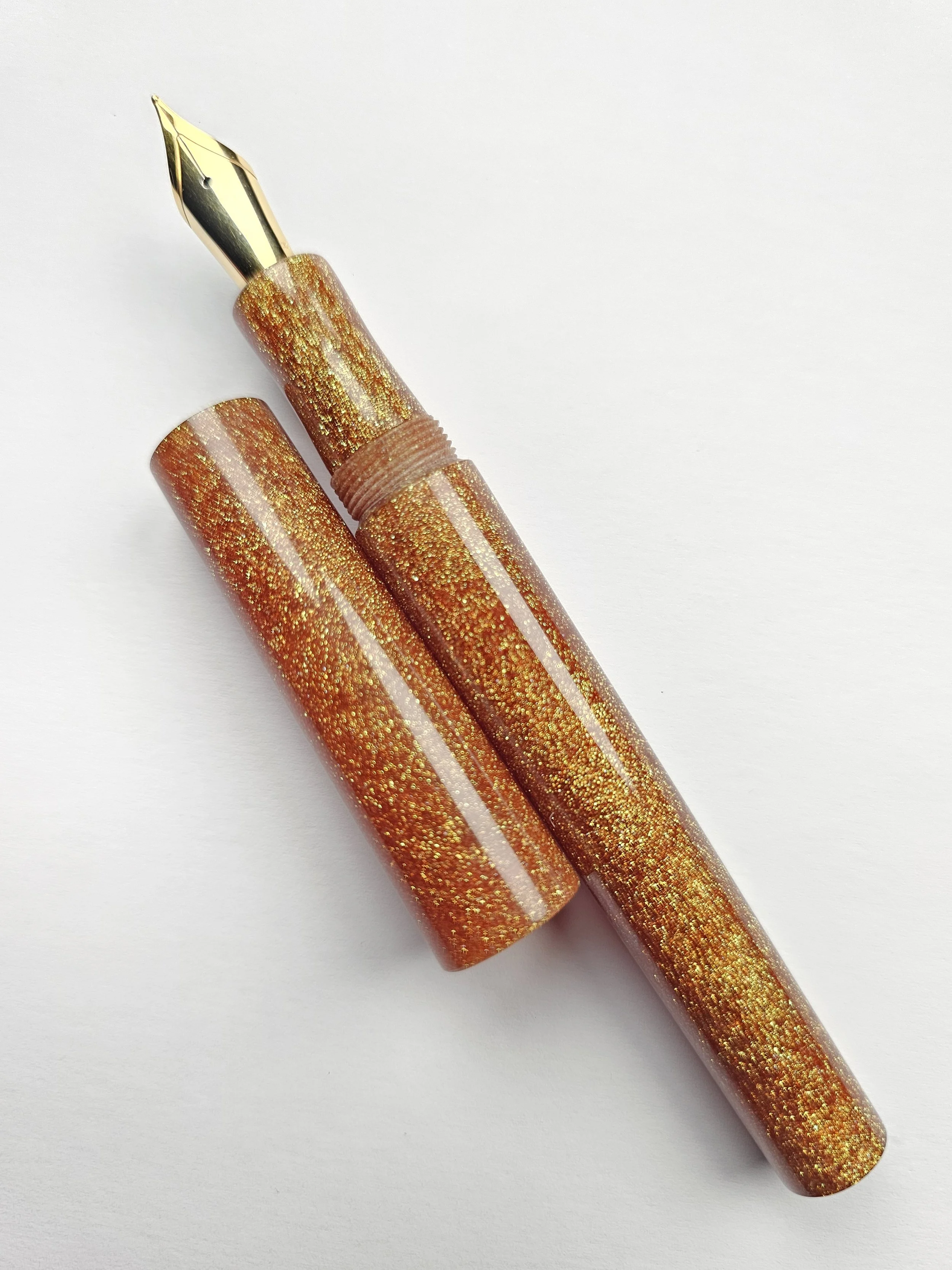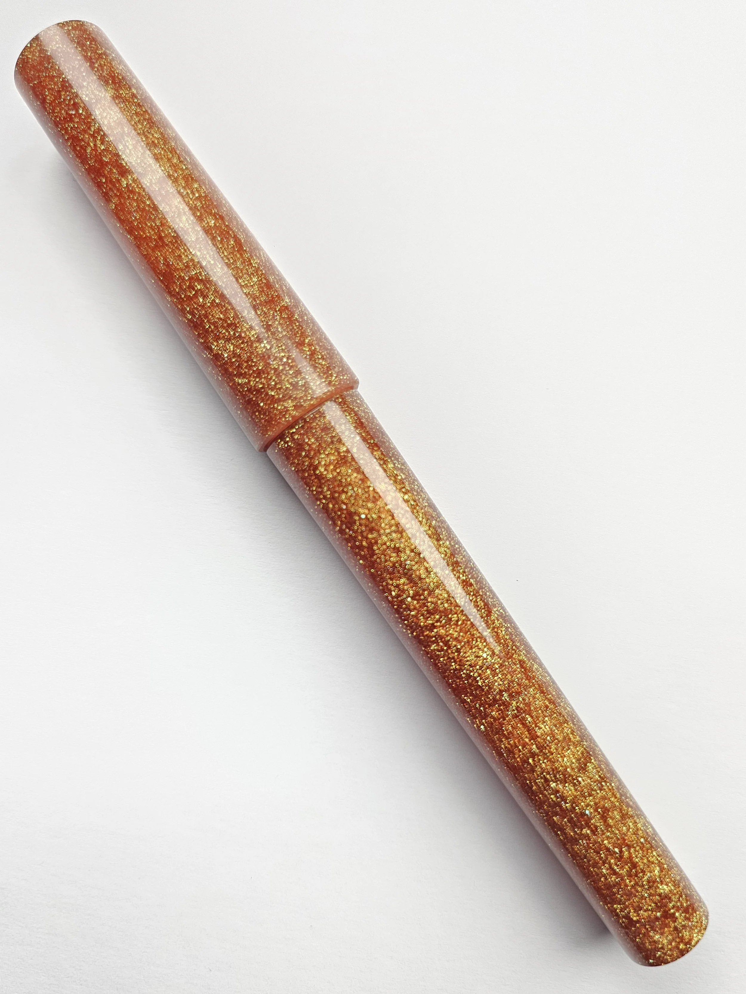 This pen changes colours between orange and red depending on the angle and lighting.