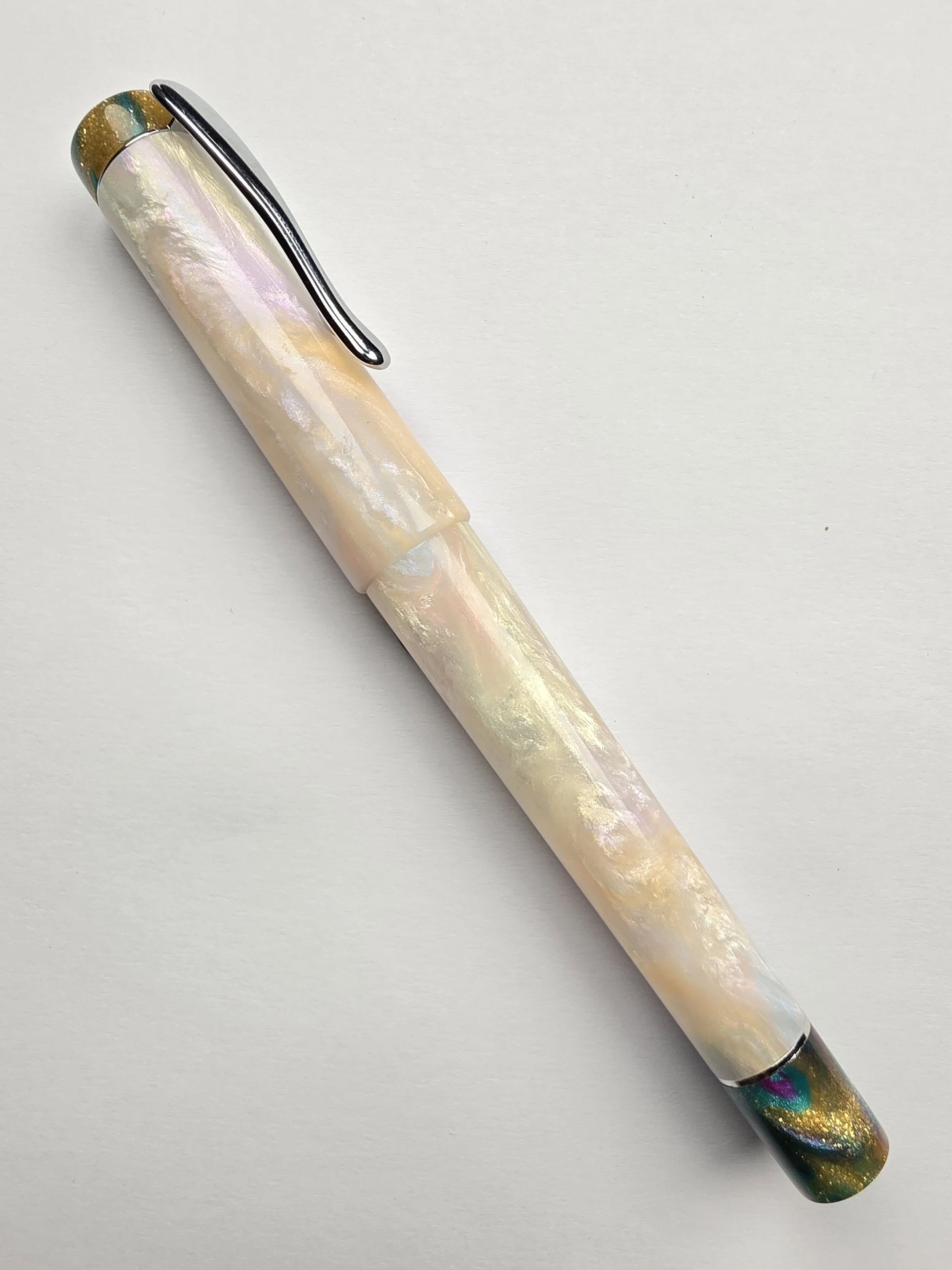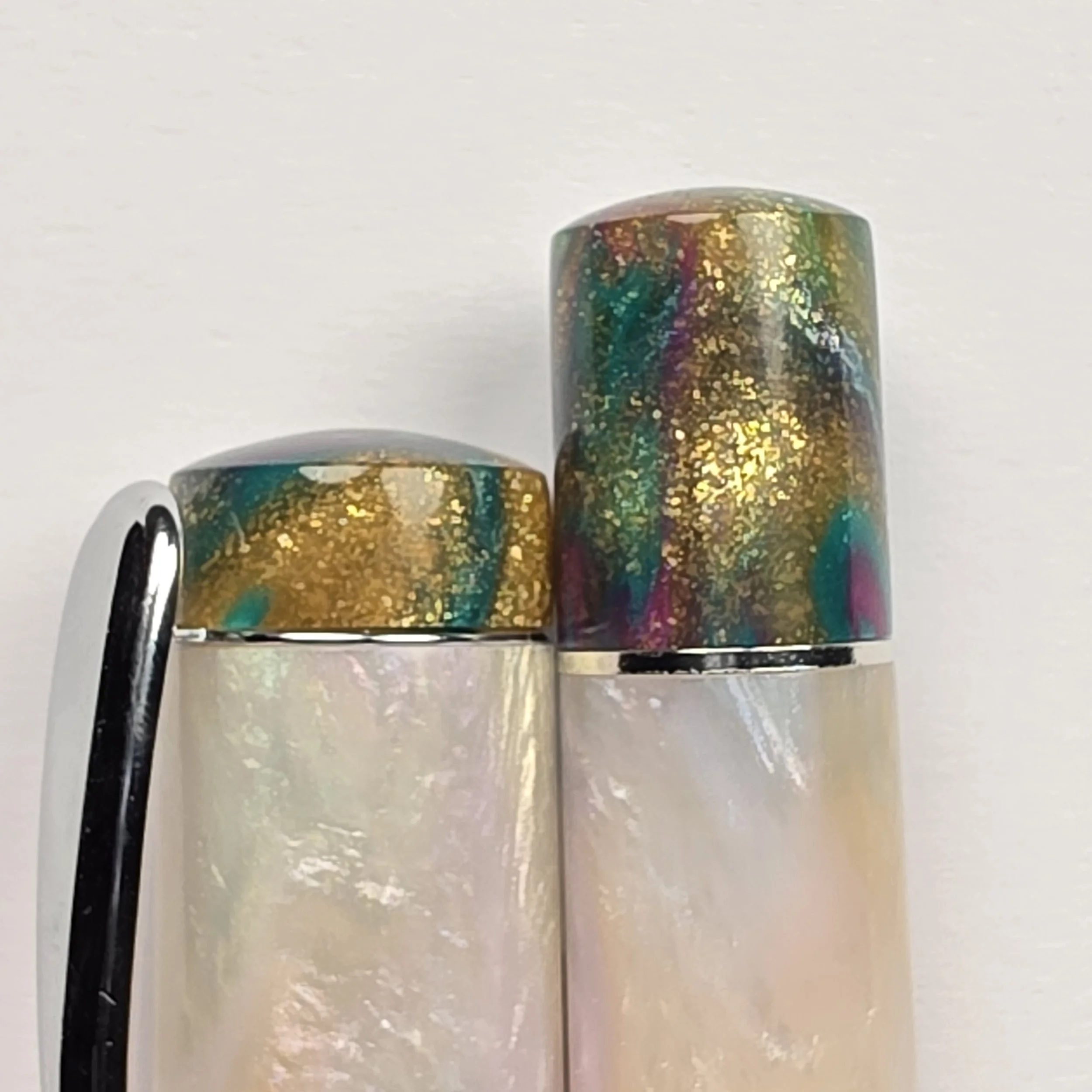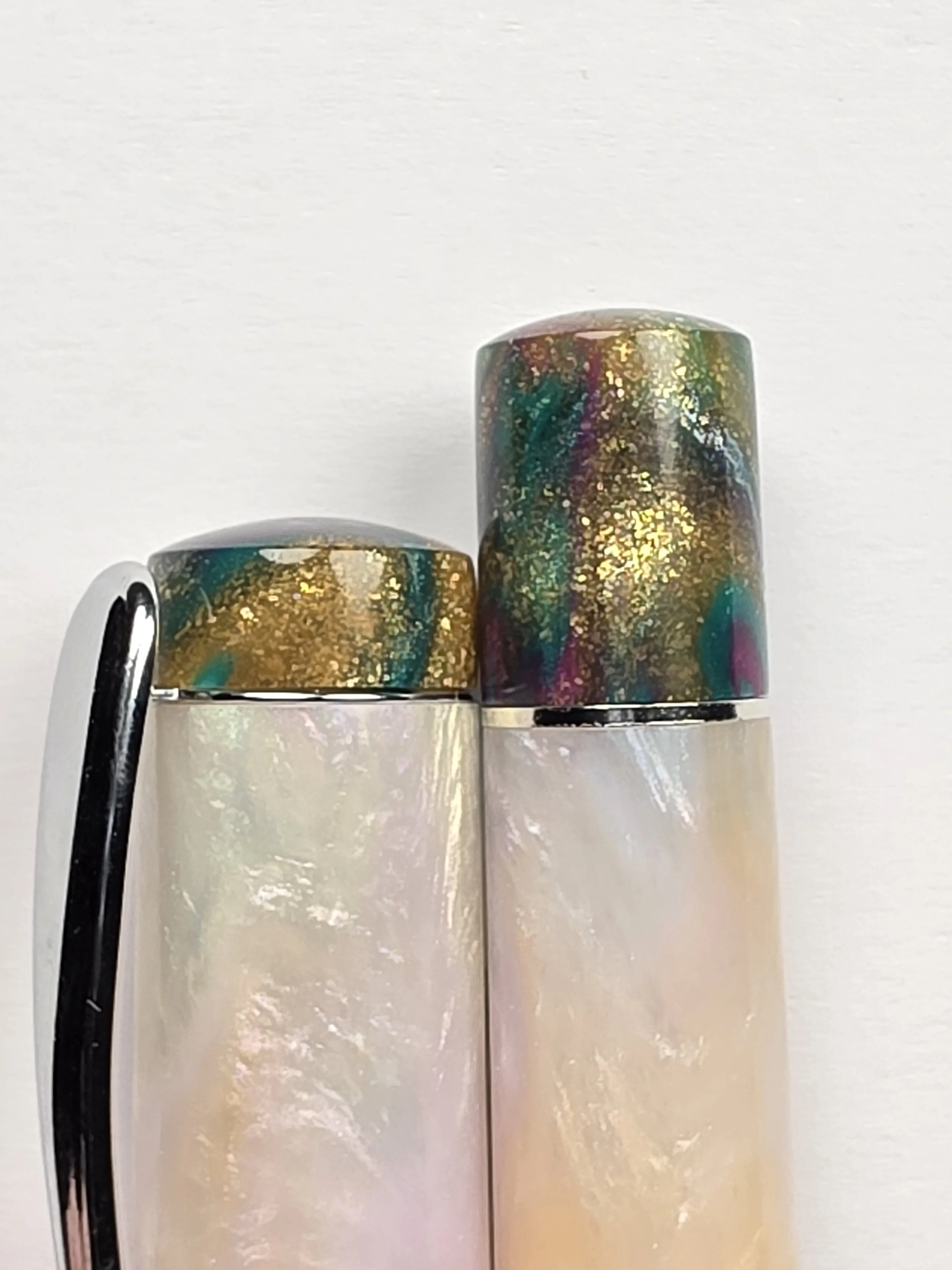 Extra set of Finials for my Deluxe Pens. These are swappable into my Deluxe range of pens (Pens with a Pocket clip and metal band at the bottom of the barrel). Simply unscrew the original finials, remove the band or Clip and screw these ones back in. Recommended to use a little dab of Silicone grease on the threads, but not essential.
