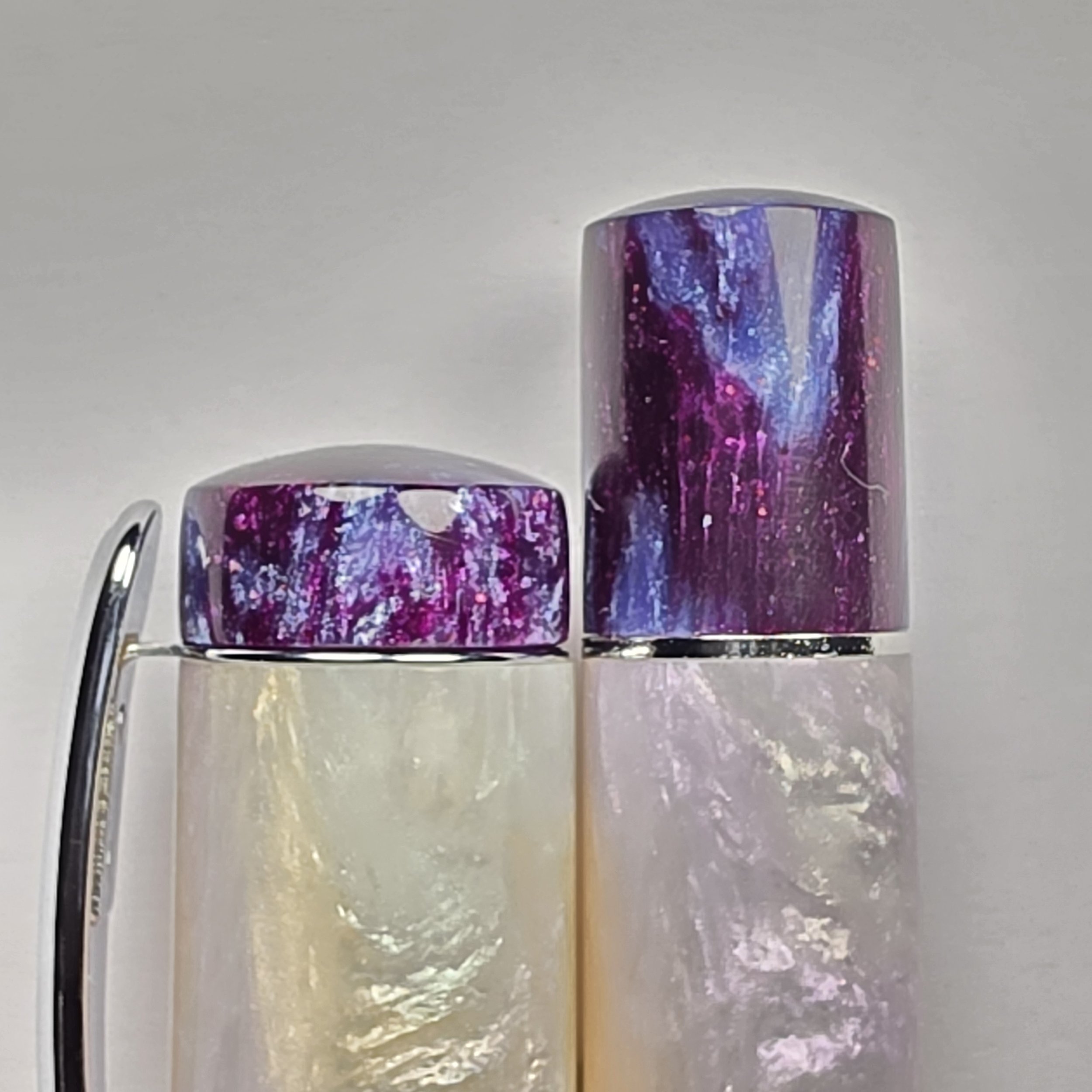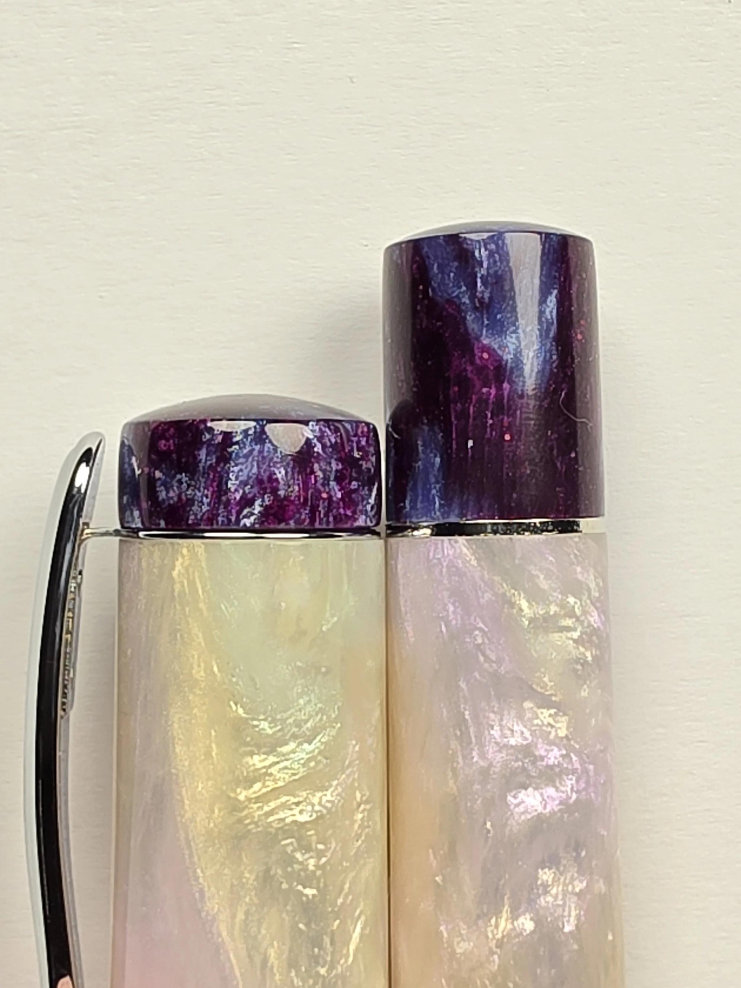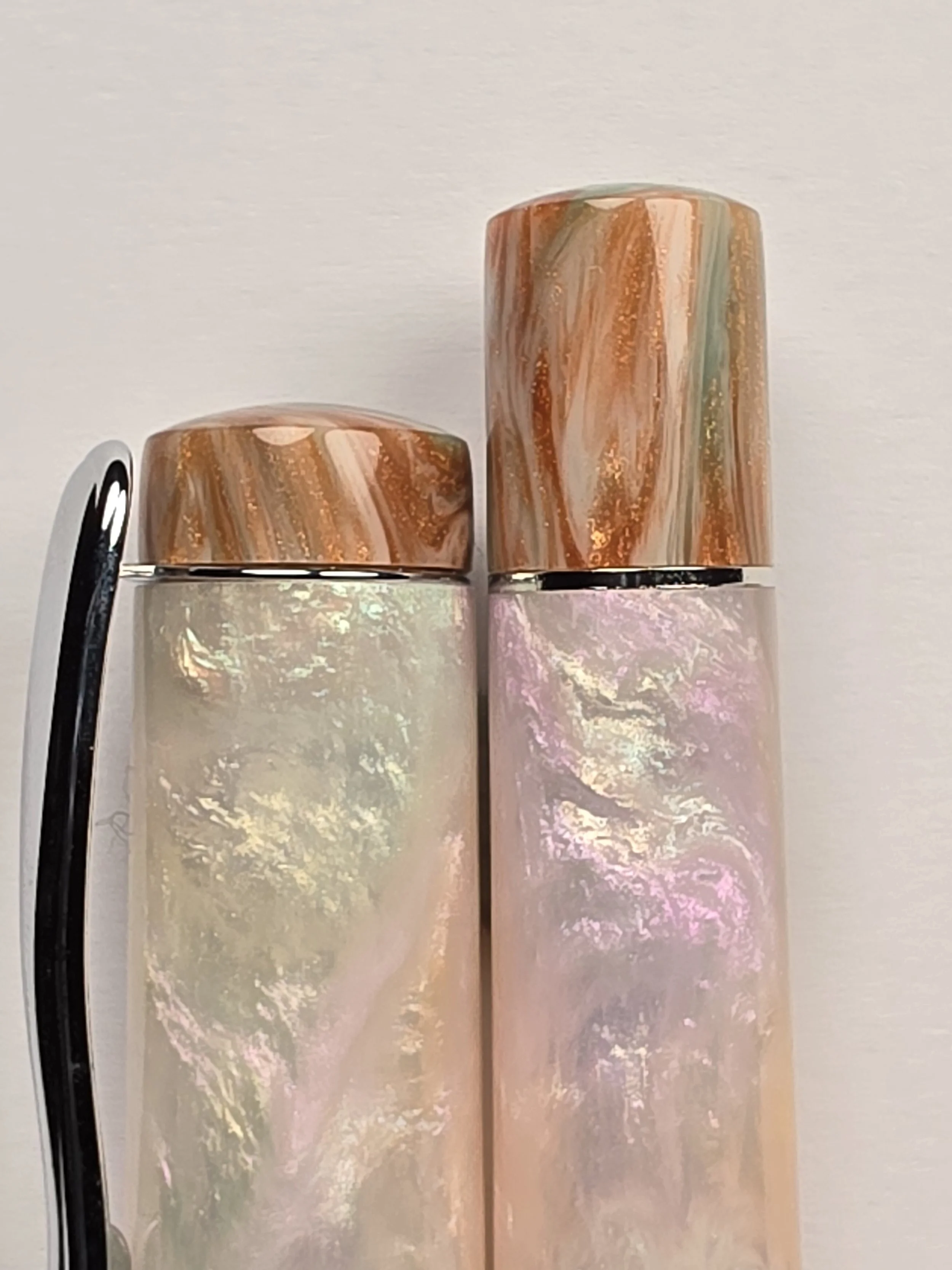 Extra set of Finials for my Deluxe Pens. These are swappable into my Deluxe range of pens (Pens with a Pocket clip and metal band at the bottom of the barrel). Simply unscrew the original finials, remove the band or Clip and screw these ones back in. Recommended to use a little dab of Silicone grease on the threads, but not essential.