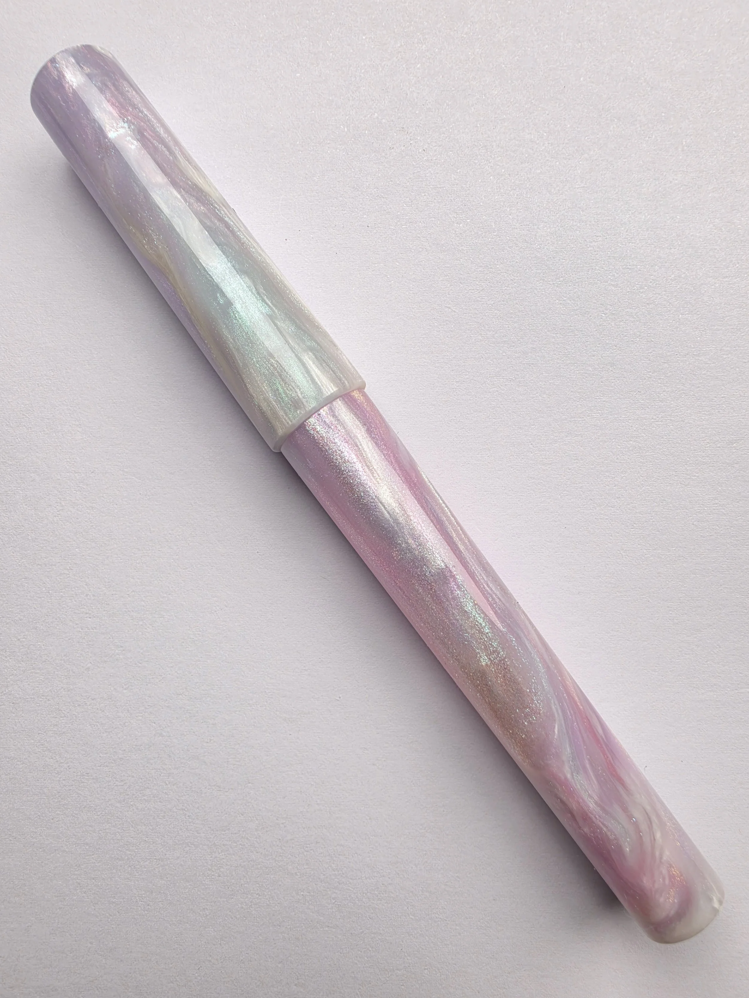 A Purple and blue colourshifts mixed with a pleasing white. Very beautiful and elegant.
